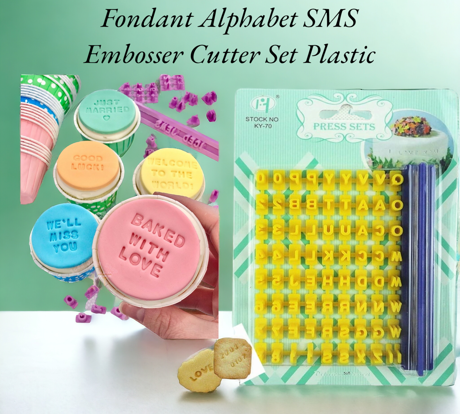 A “Fondant Alphabet SMS Embosser Cutter Set” typically refers to a set of plastic tools used for cake decorating, specifically for embossing or cutting out letters in fondant or similar materials like gum paste or cookie dough. Here’s a brief breakdown:
