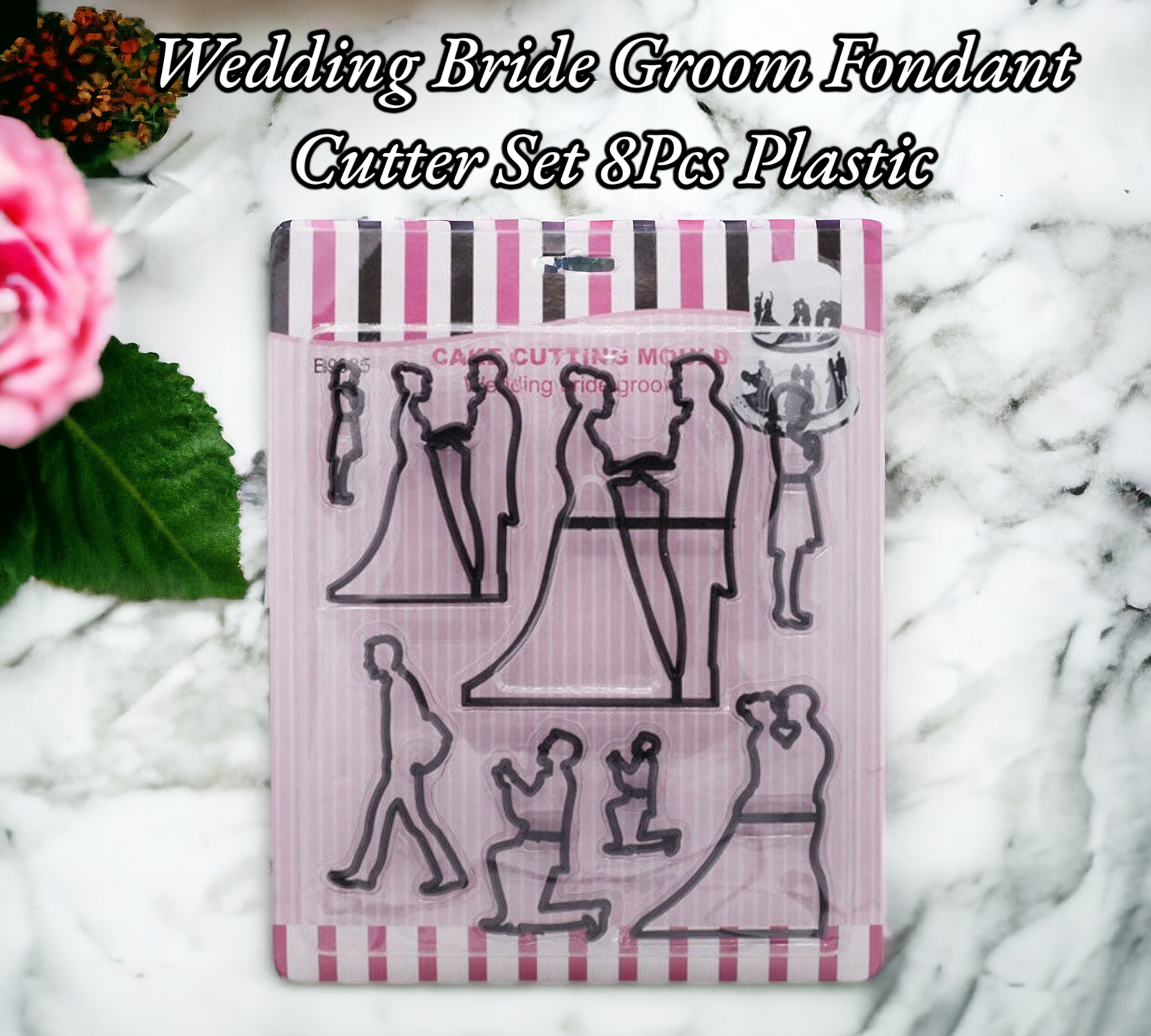 A “Wedding Bride Groom Fondant Cutter Set 8 Pcs Plastic” is a cake decorating toolset designed for creating wedding-themed fondant shapes, specifically related to a bride and groom. Here’s an overview of what such a set usually includes: